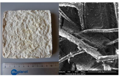 The invention relates to a panel made of a composite material, wherein said composite material comprises a geo-polymer matrix and wool fibers. In the preparation of the geopolymer matrix, natural materials are preferably partially replaced with ashes from vegetable and/ or animal biomass. The composite panels described herein have chemical-physical characteristics that make them excellent insulating and fireproof materials, which can find application in various fields, i.e. as functional, structural and non-functional elements, in construction, in the naval sector, road transport, furniture, product design, etc.
