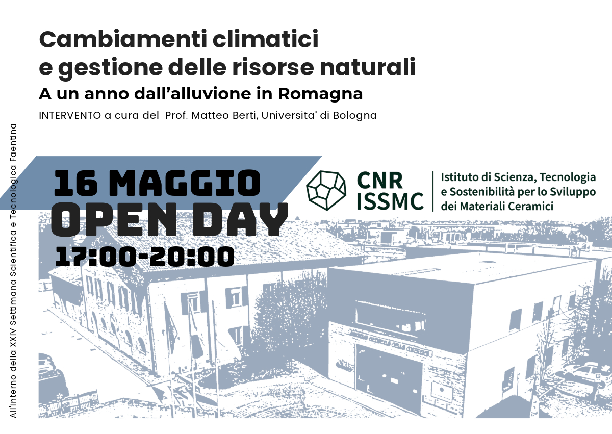 Giovedì’ 16 maggio CNR-ISSMC aprirà le sue porte al pubblico. Sarà un’occasione per parlare di cambiamenti climatici, dei loro effetti sulla comunità, e di come la ricerca si stia muovendo per mitigarne gli effetti e preservare le nostre preziose risorse naturali.